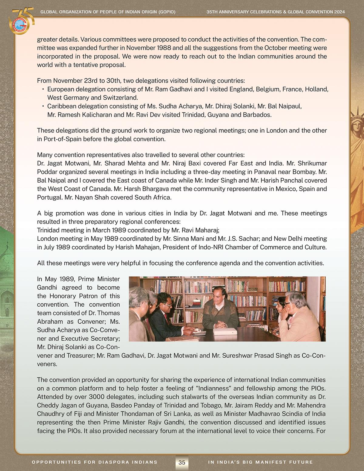 The Global Organization of People of Indian Origin (GOPIO) is a secular international organization of people of Indian origin. GOPIO was founded at the First Global Convention of People of Indian Origin in New York in 1989 when delegates from 35 countries attended this convention. Over the years, GOPIO has taken up issues of civil rights and human rights violations of the Indian Diaspora around the world and are pleased to say that our communities have joined the political mainstream in most of the countries with significant Diaspora population. In 35 years, GOPIO has grown bigger and better in mobilizing the community for common causes. GOPIO has been in the forefront to take up issues of common interest of the Indian community living outside India.