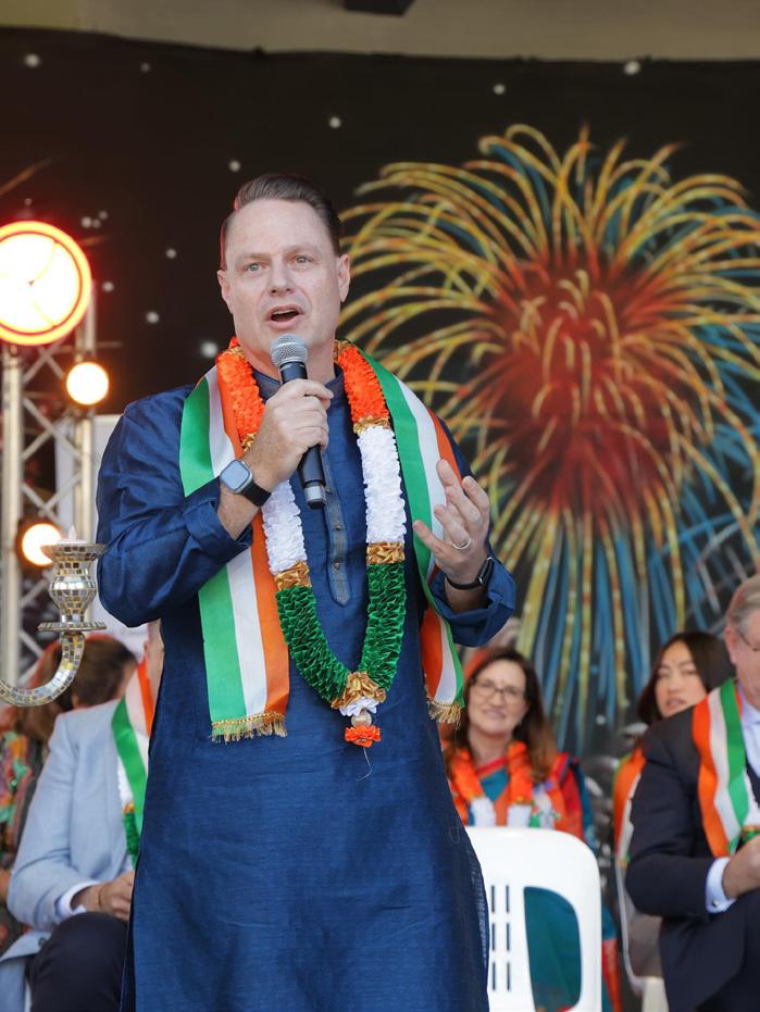 The event concluded with a vote of thanks delivered by Yousuf Alikhan, followed by a final wave of cultural performances, including continued showcases from the Rajasthani Dance Troupe. Attendees departed with a renewed sense of community and pride in Indian heritage, having witnessed a wellorganised celebration that showcased Queensland’s Indian diaspora and its allied partners.