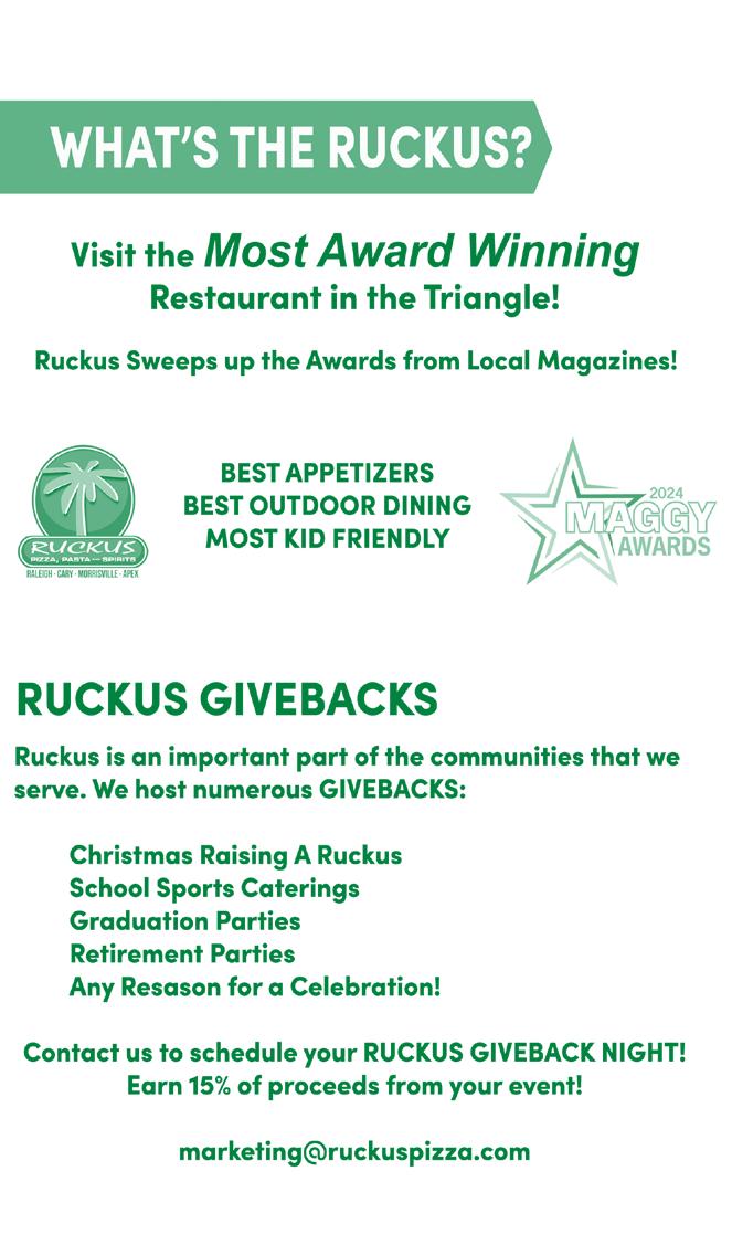 Ruckus Pizza, Pasta, and Spirits ... 10 - 11 & 118 - 121