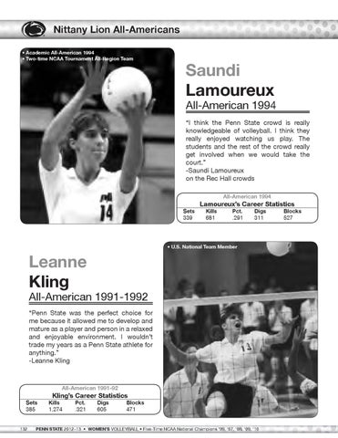 All-American 1994 “I think the Penn State crowd is really knowledgeable of volleyball. I think they really enjoyed watching us play. The students and the rest of the crowd really get involved when we would take the court.” -Saundi Lamoureux on the Rec Hall crowds All-American 1994 Sets 339