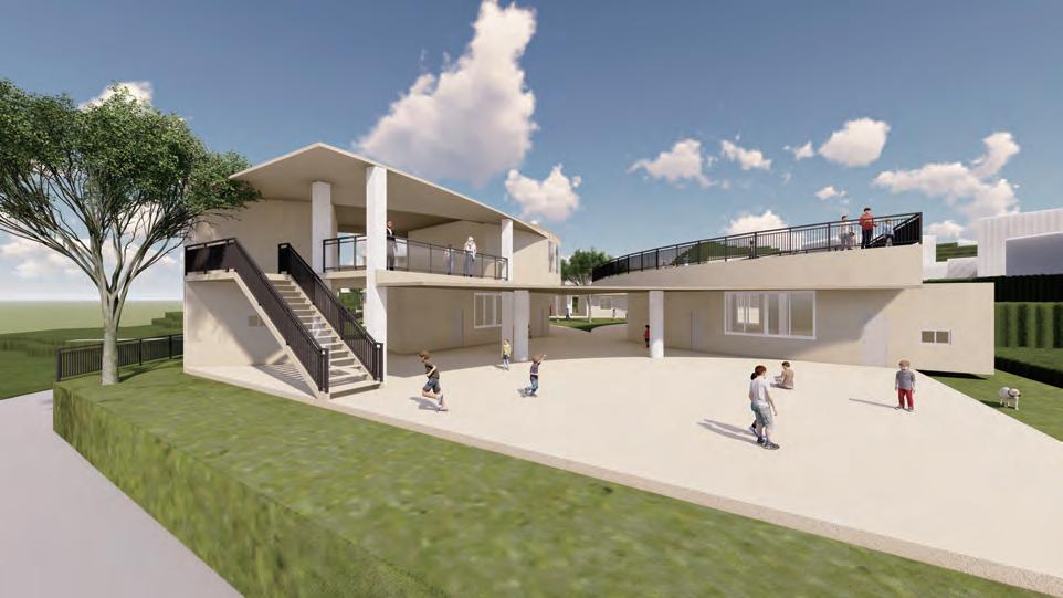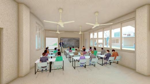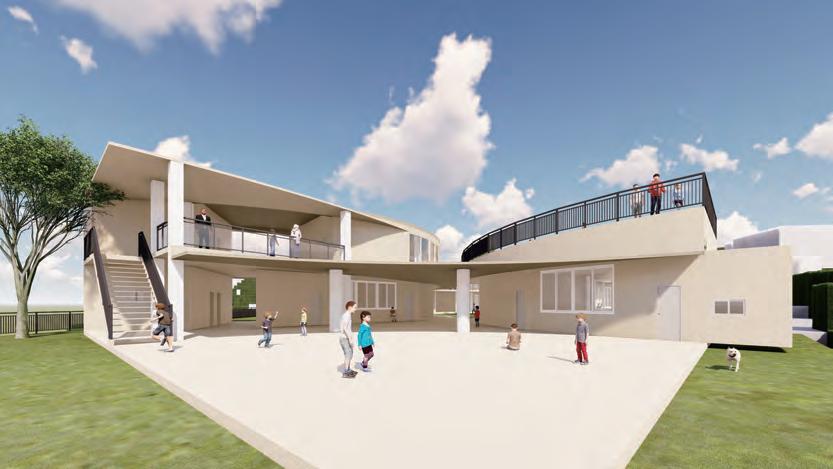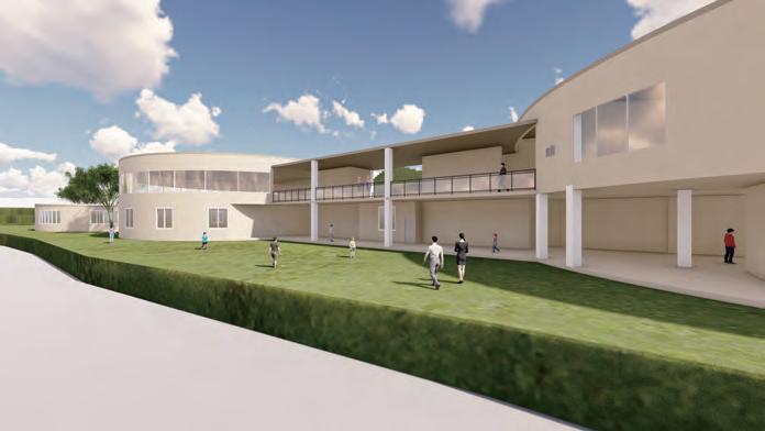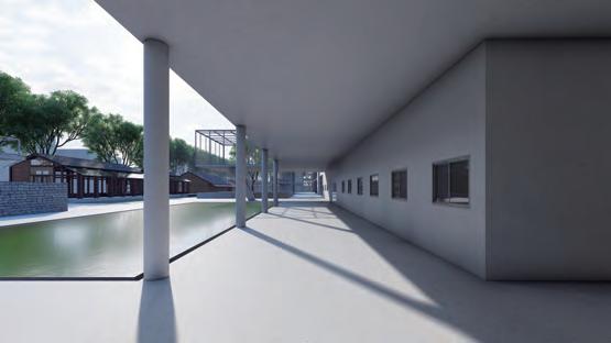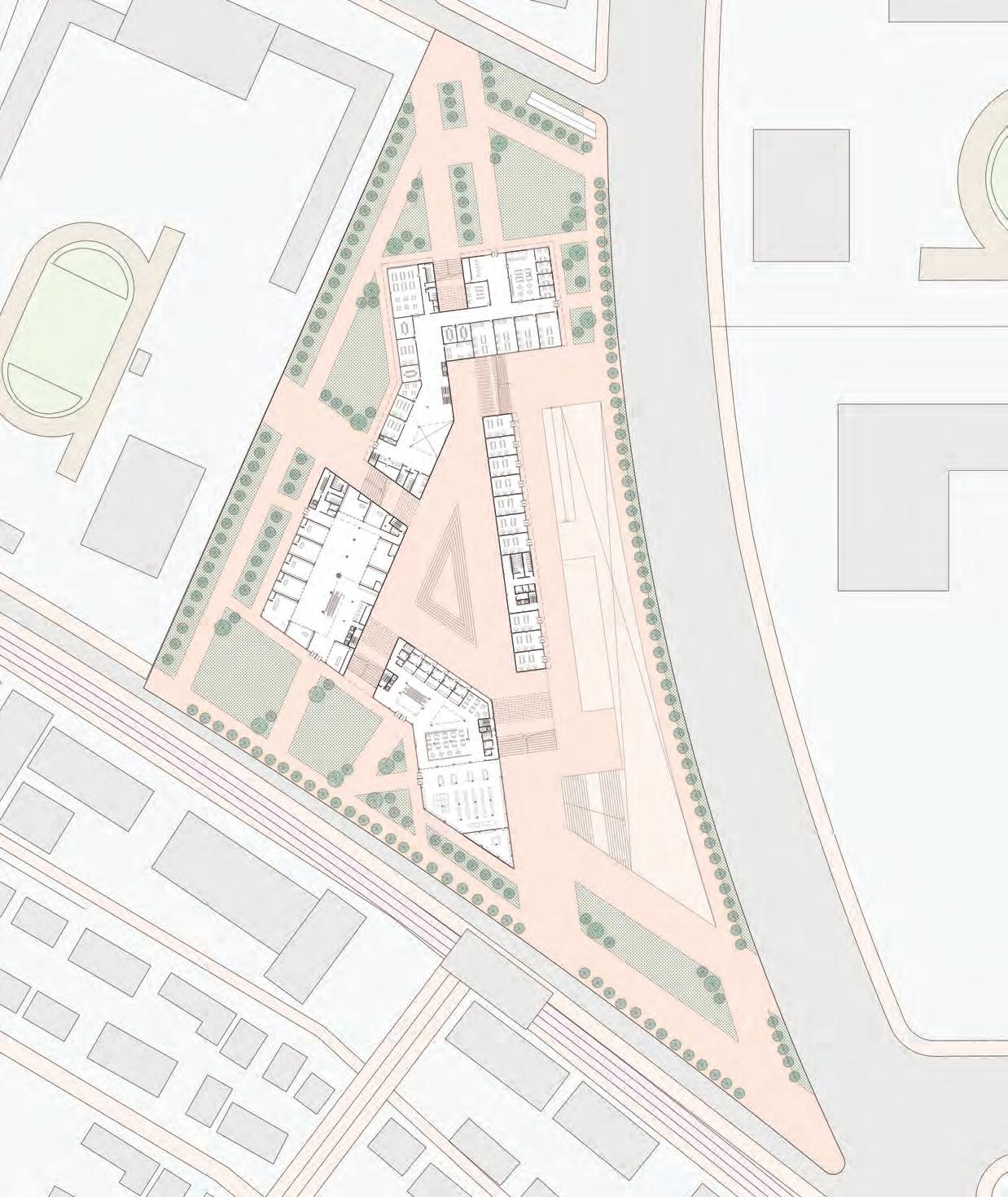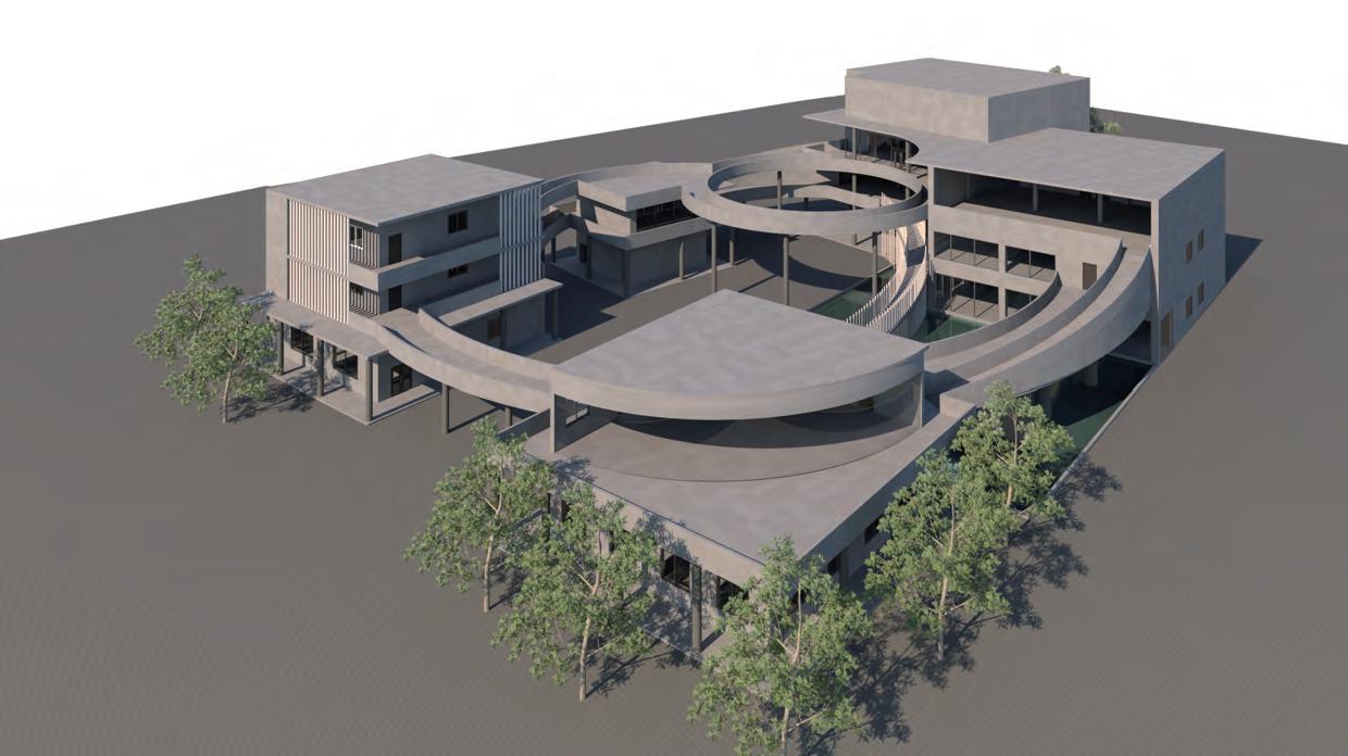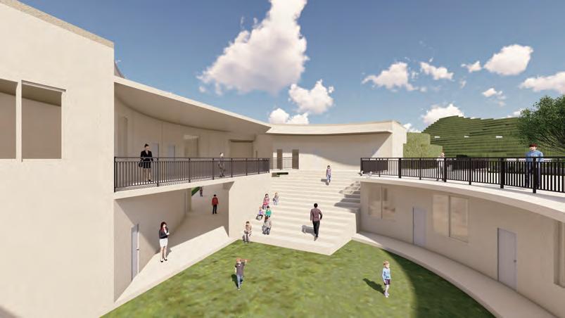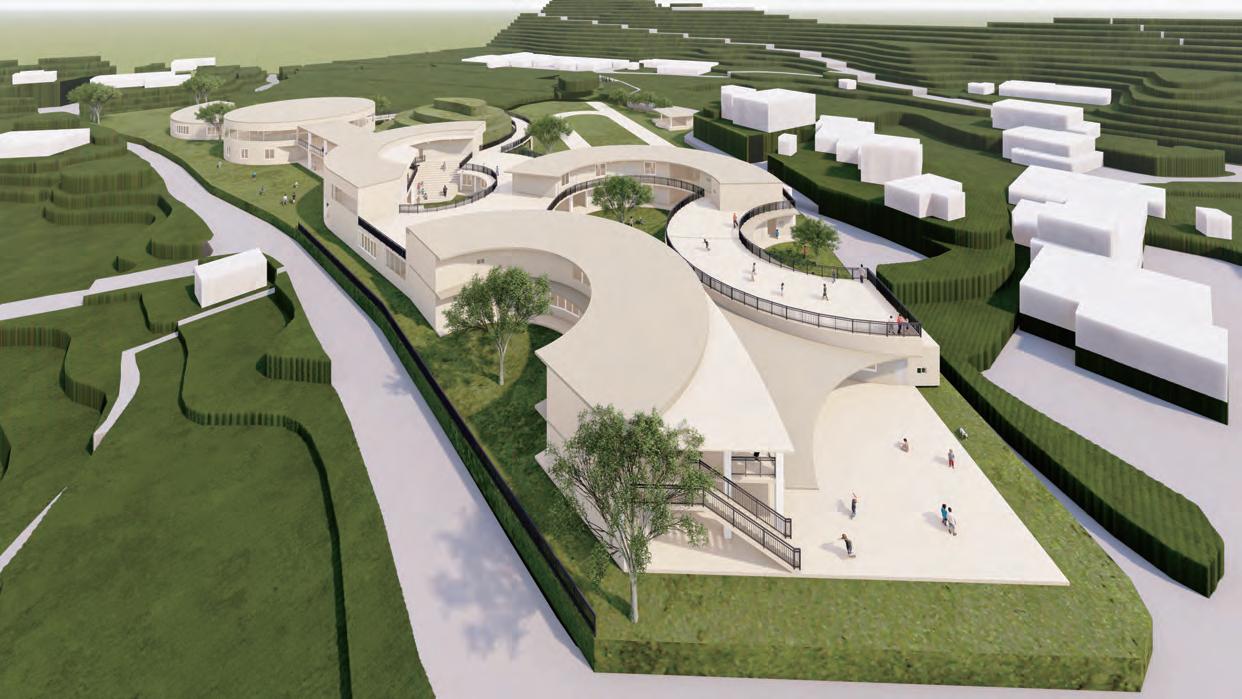 圓弧作為教育空間,產生一個靈活的空間,年級與年級之間又產生了一個 特殊的中央公共庭院,為主要公共領域創造了隱私,並使教師、學生在校 園之間可以快速移動,弧形的校園設計和班級的安排方式形成了學校的特 色,使彼此之間都能產生交流與互動,使學習更加自由,加上原本大自然 的環境,讓學生有更多不一樣的體驗並且獲得更多不一樣的智慧與技能。