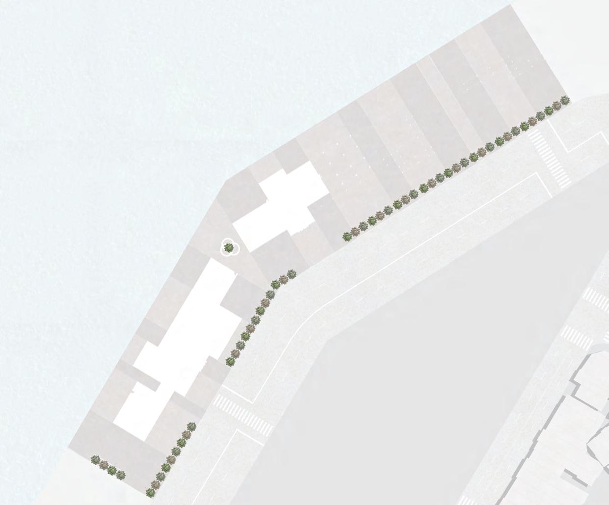 利用花台將建築的角落做向上漸層的退縮效果,降低路人經過時產生的壓迫感,也 增加建築在都市紋理中的親切感。