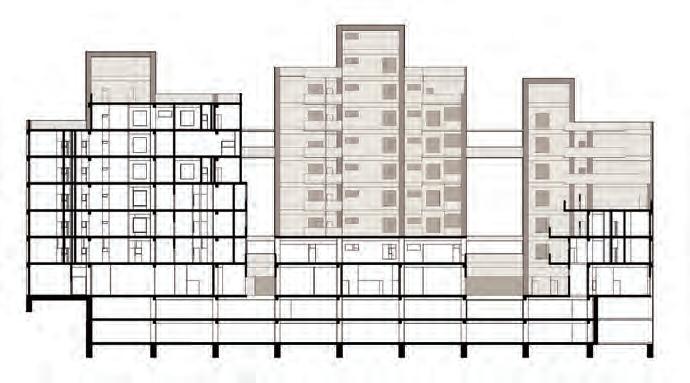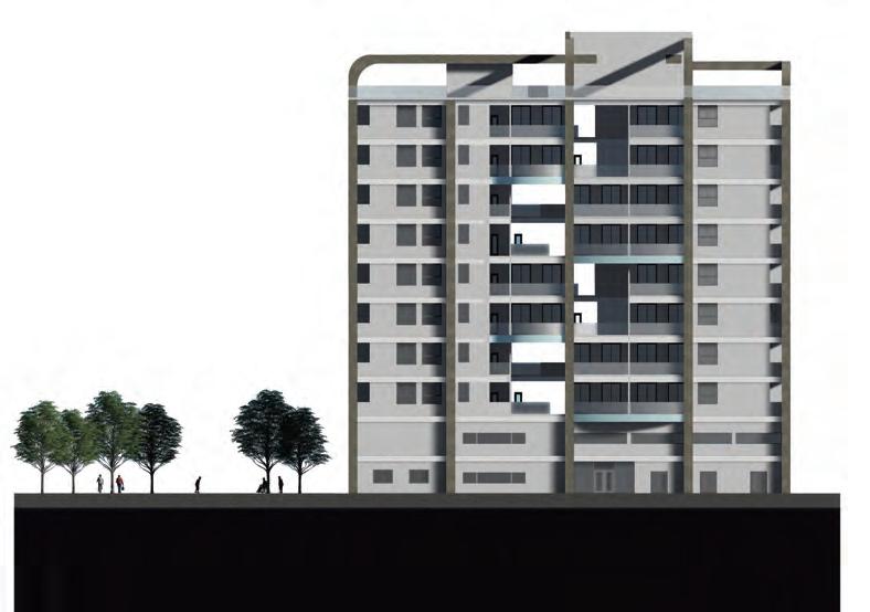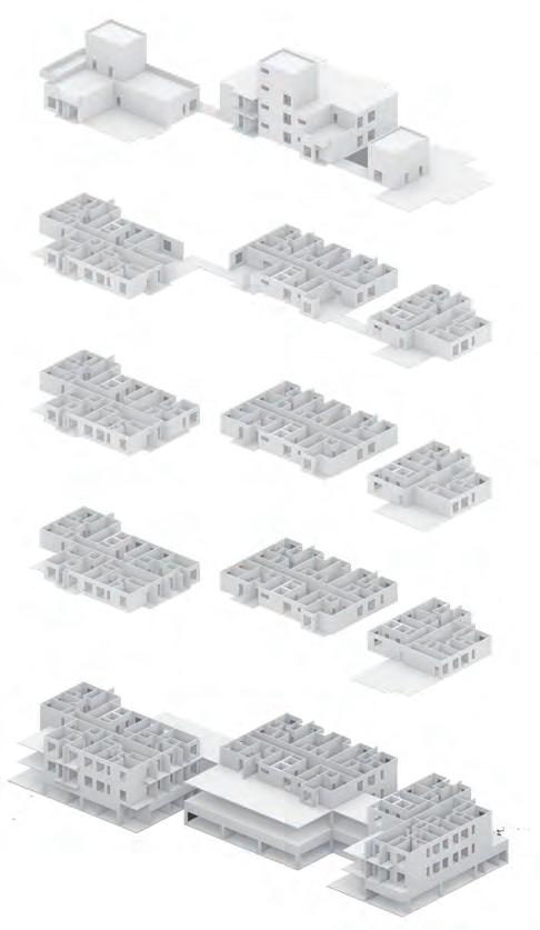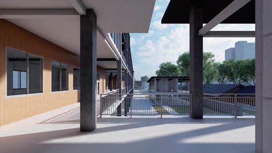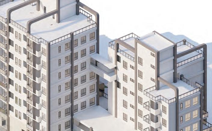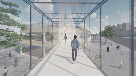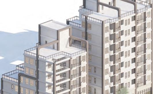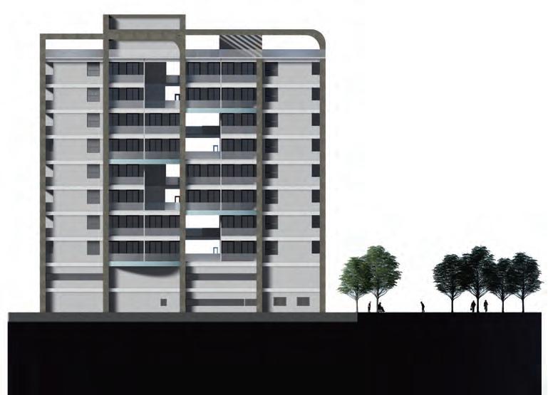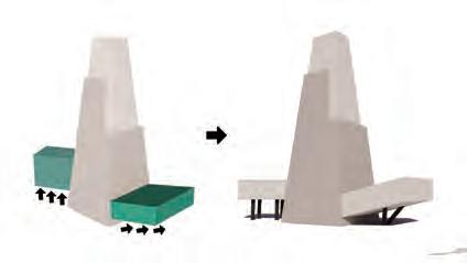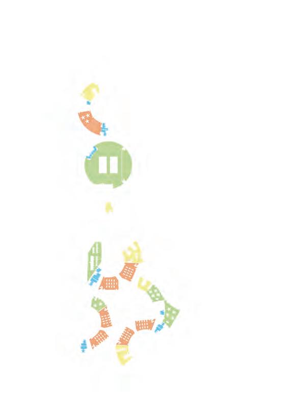 將青壯年與年長者的區域在適當的樓層利用空橋做連接,進而使各年齡層在各個有 趣的公共空間裡產生交流與互動,達成跨世代理想社區的理念。