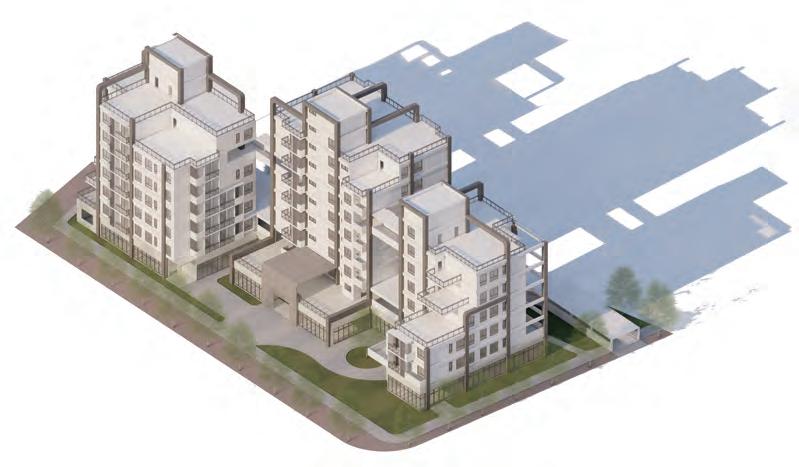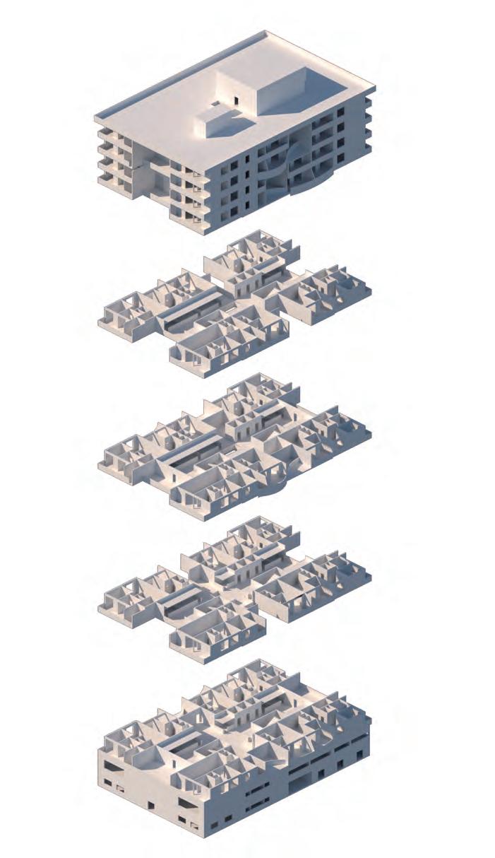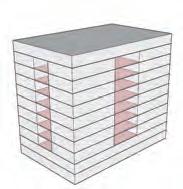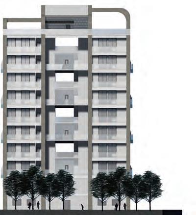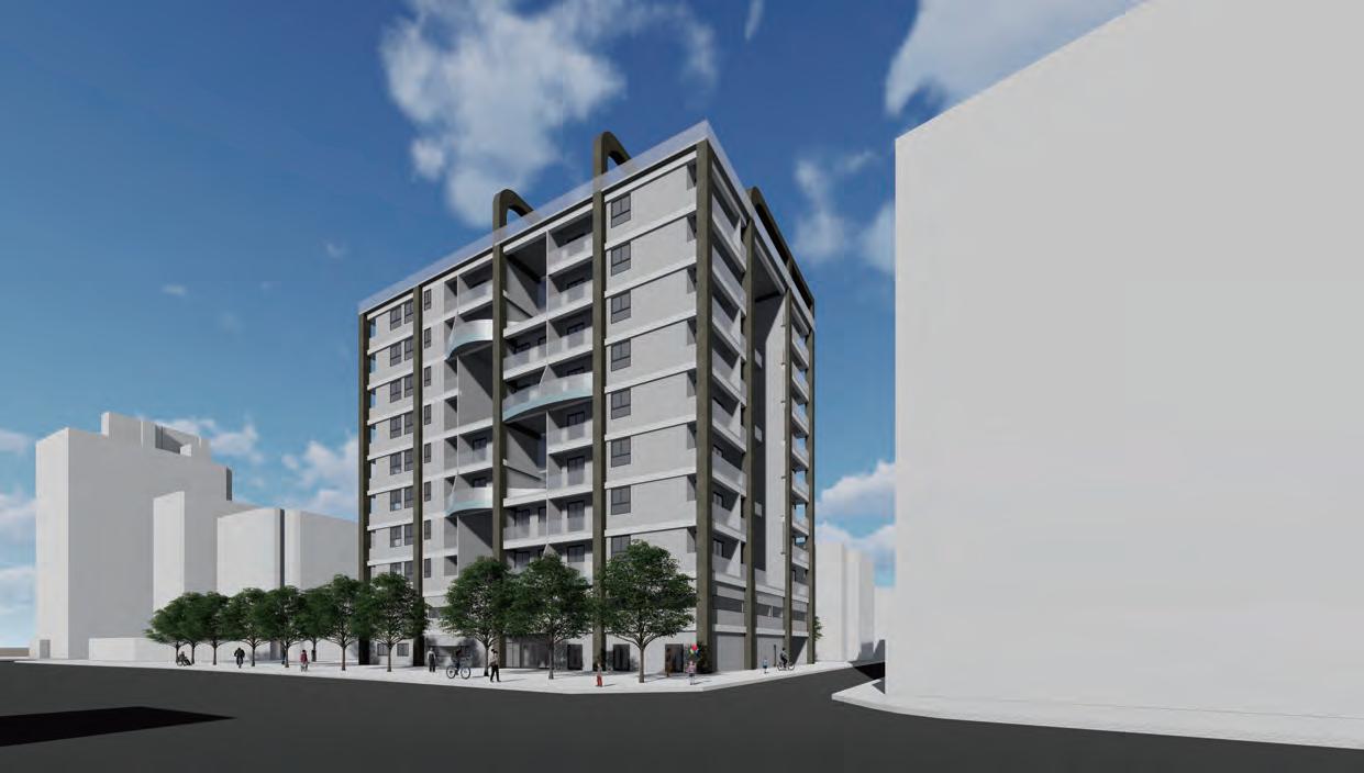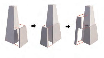 基地經過建蔽容積計算過後,適度的減法設計,將量體拉高,將我的量體分別規劃 成7/8/9層樓高,盡可能找到視覺效果的平衡點,再調整各個尺度,形成最終量體。