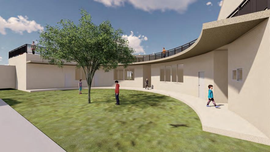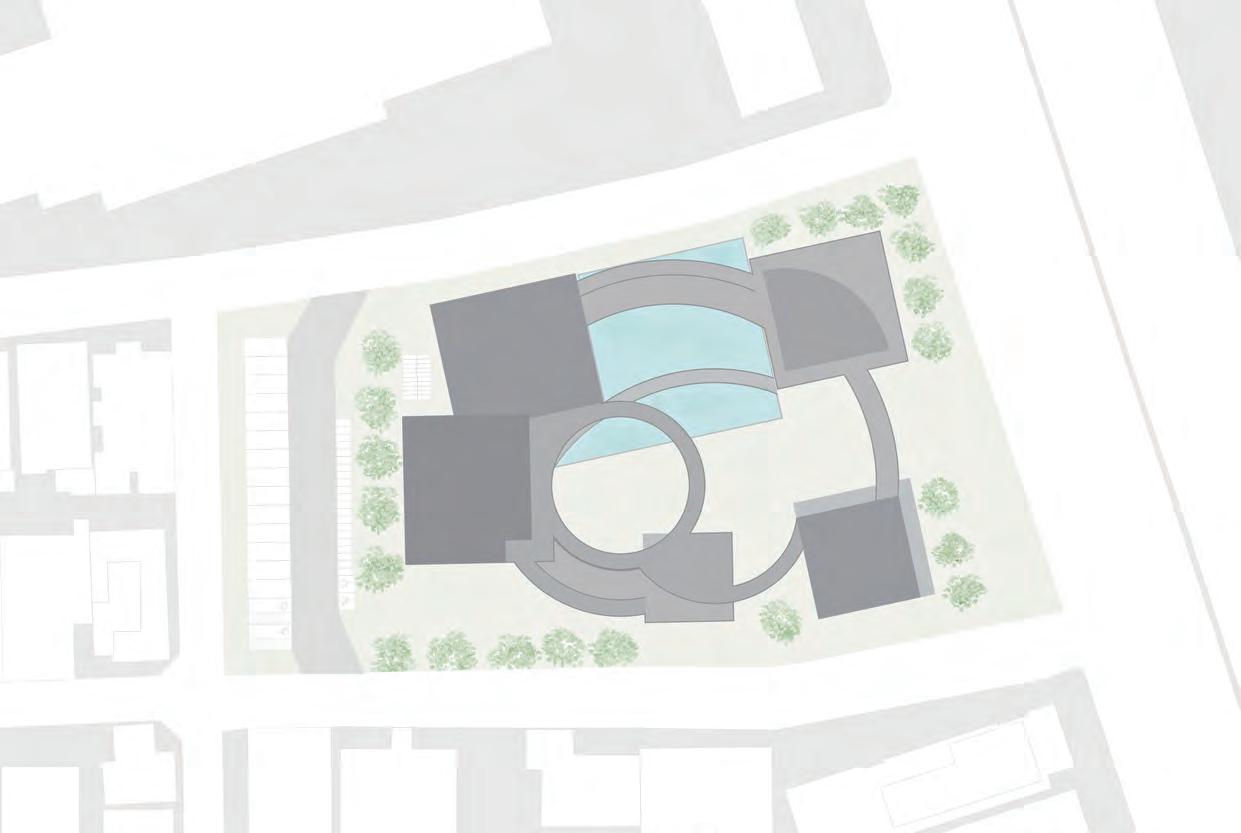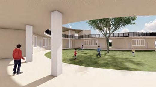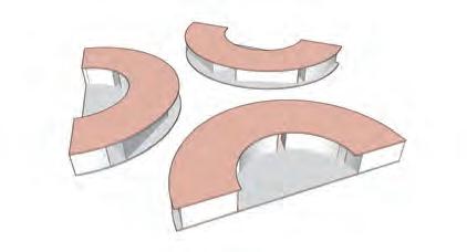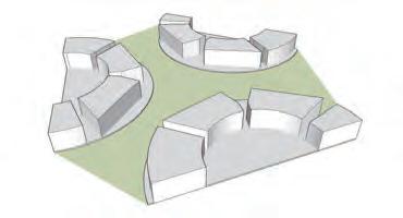 用弧形量體當作主要單元 並圍繞出一個戶外空間