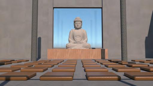 利用莫比烏斯環與佛教中六道輪迴的概念,去讓空間產生垂直動線與水平動線,讓民眾從進來 到主殿的過程都能感受到佛教的一切,體會六道輪迴的宗旨,每一個空間,每一種感受,都透 過圓的元素、挑高的設計、有趣的動線等去做串聯。在這個莊嚴的圓融道場裡讓心靜下來,並 試著去感受它,淨化自己的心靈。