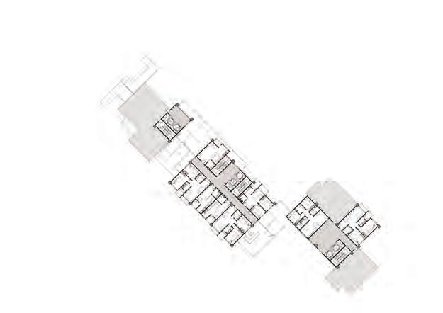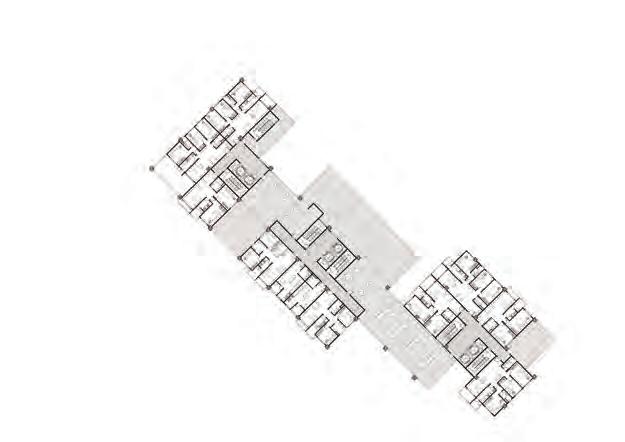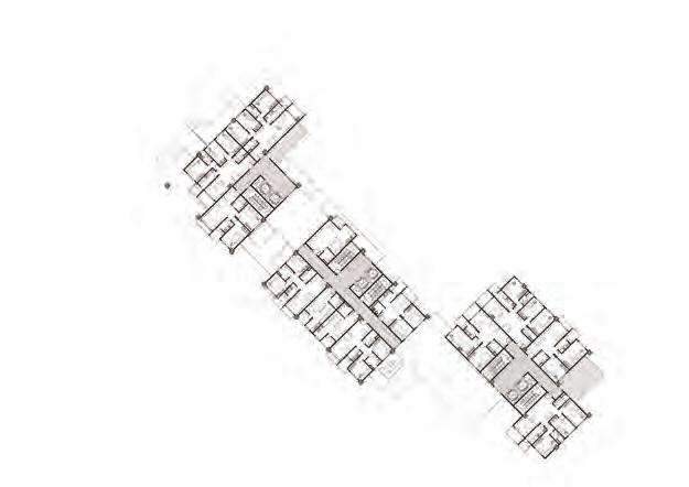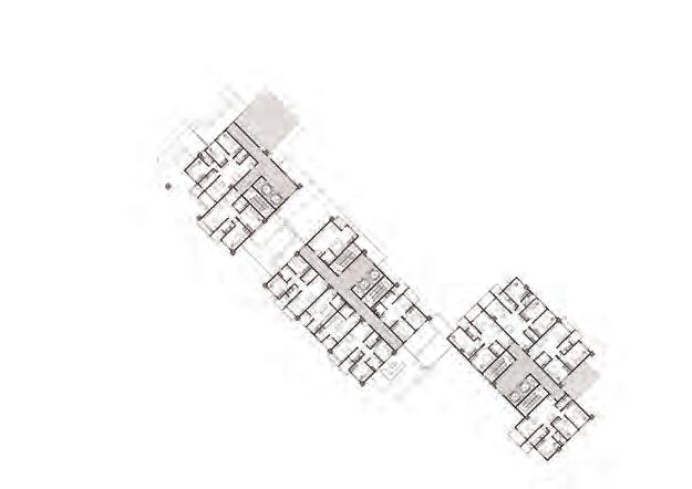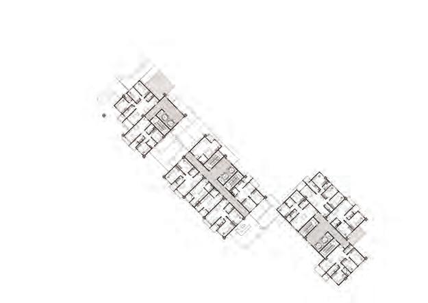 三房型的單元在青壯年的年齡層較為需要,故規劃在青壯年的棟別,並安排在邊角 的位置擁有雙面採光。