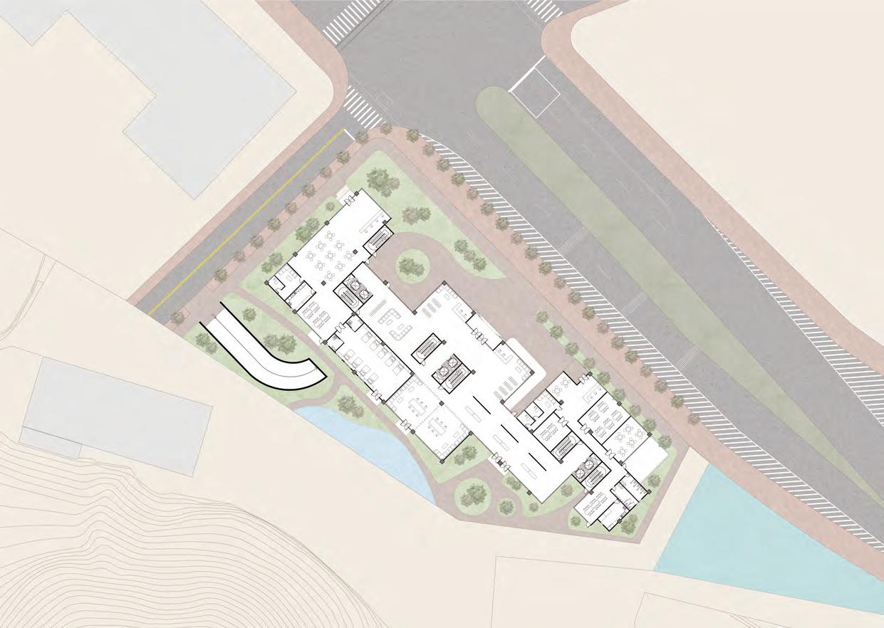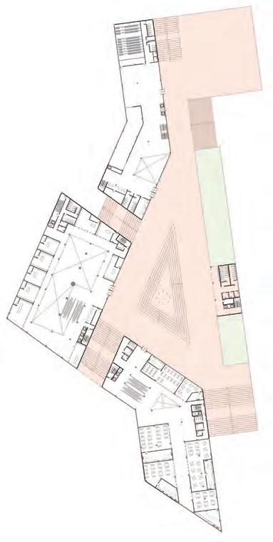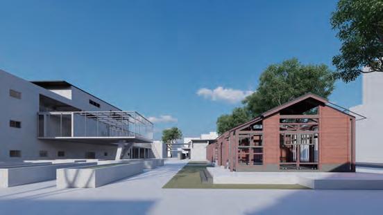 內結合了創業育成空間、交流展售 空間、輔導管理空間等,再利用三 個主要的廣場去做區隔,就是為了