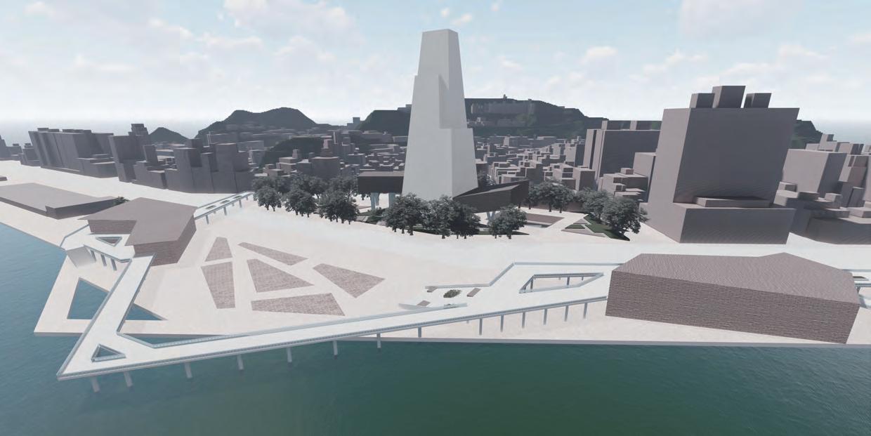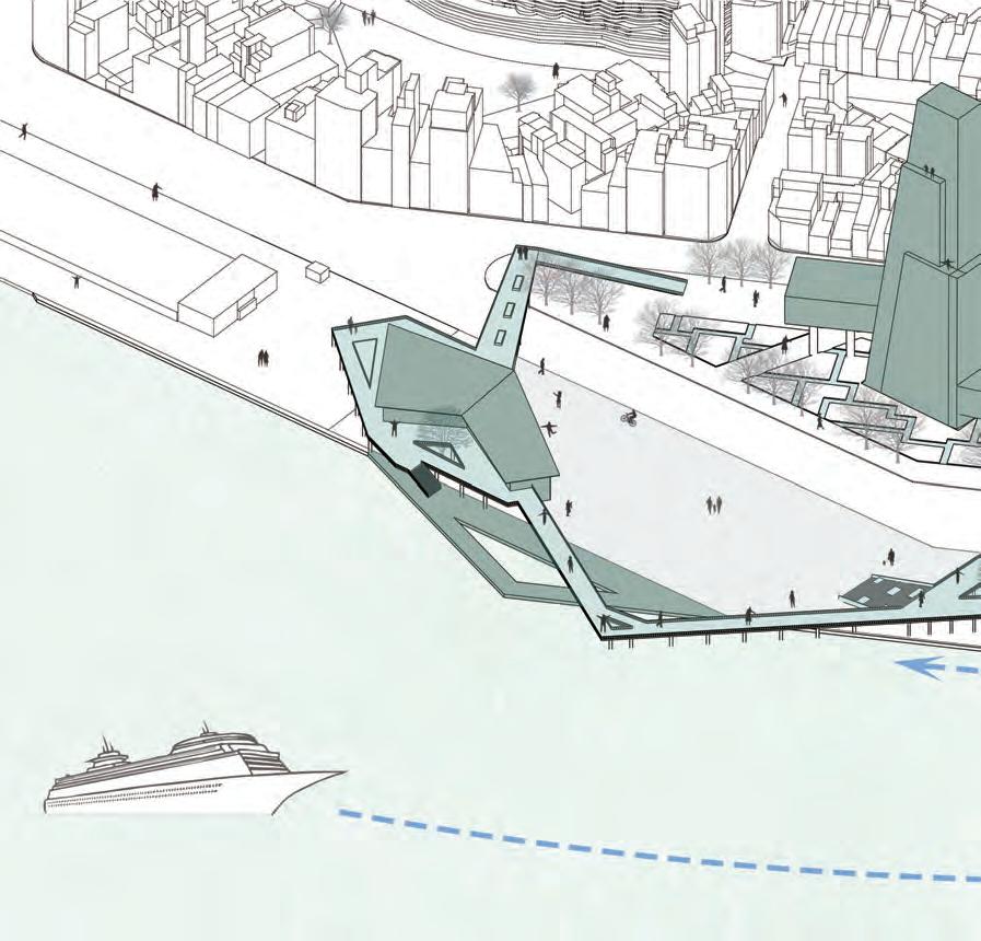 設計範圍,提供整體的一個方案,滿足郵輪旅運與商業機能為 前提,創造基地周邊多元豐富的都市活動,並串聯地區人行環 境與觀光資源,帶動東岸市港再生。