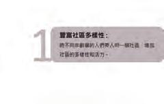 在這樣的背景下,我們希望藉由這次的機會,打造出一個可以 滿足跨世代年齡層的理想社區,創造舒適且安全又有不一樣的 生活體驗空間。這個理想社區應該注重環境的友好設計,考慮 到無障礙設施和方便老年人的設計,同時也提供適合年輕人現 代生活需求的居住條件。