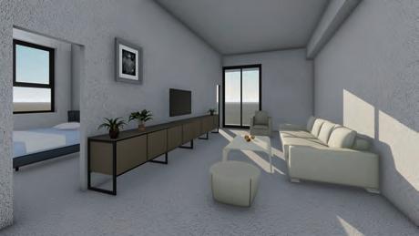 或老年夫妻做使用,使老人生活起居較為方便。 二房型-1: 年長者在居住空間中有安全問題的考量,多數人會結伴生活,就會有好閨密或是好 兄弟相約住在一起過養老生活,考慮到兩位年長者的身分是平等的,因此將房間設 計為兩間一樣大小的空間,讓彼此在同一個空間裡面保有各自的隱私又能共同生活 互相照顧。