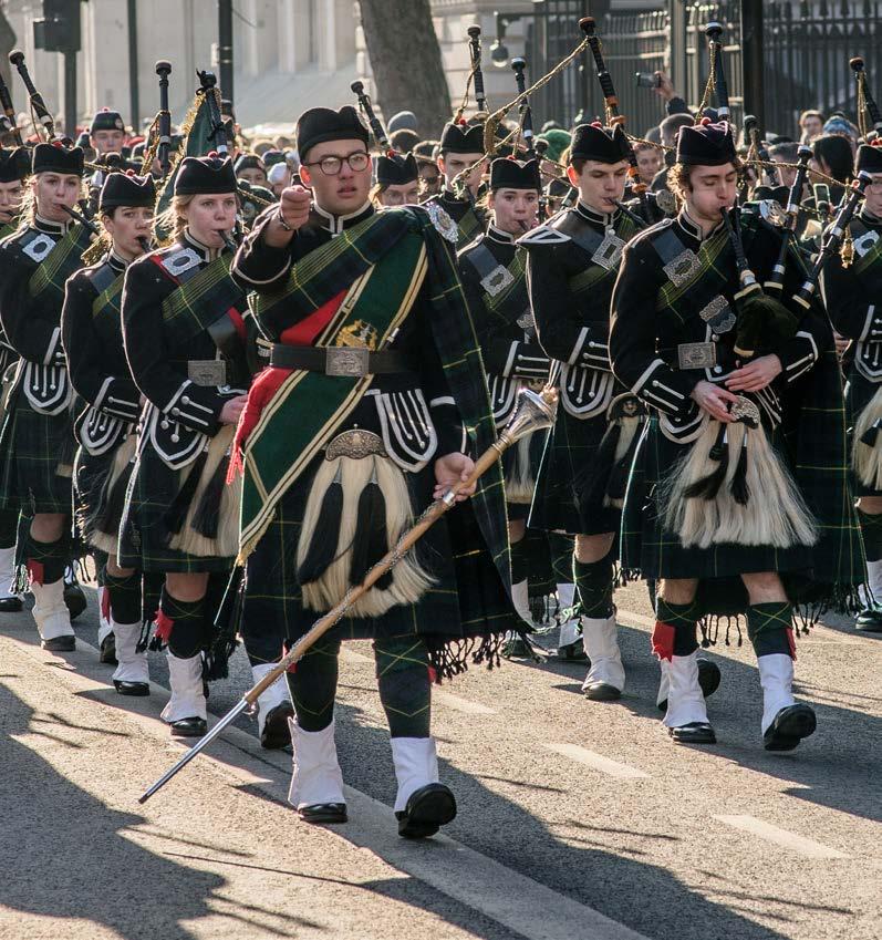 Students, led by the Pipes and Drums, brought Whitehall to a standstill for the annual Parade in January in memory of General Charles Gordon, in whose honour the school was founded. Over 200 students took part in the Parade to the General Gordon statue on the banks of the Thames. There, during the Memorial Service, wreaths were laid at the foot of the statue by Tom Gordon, representatives of the School and Paul Ivory 7937 (1980) on behalf of the Gordonians.