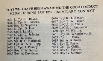 (Bill) Jupp 6642 (1959) attended Gordon Boys’ Home and was awarded the Good Conduct Medal during 1959 by Field Marshal Lord Montgomery, Guest of Honour at the Parade in 1960.
