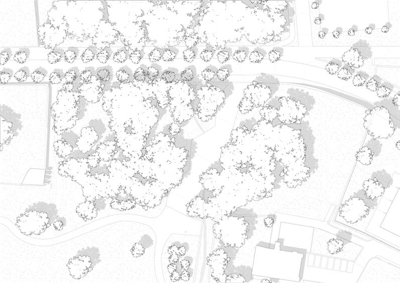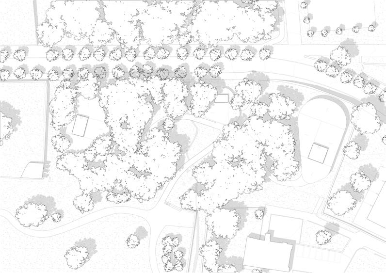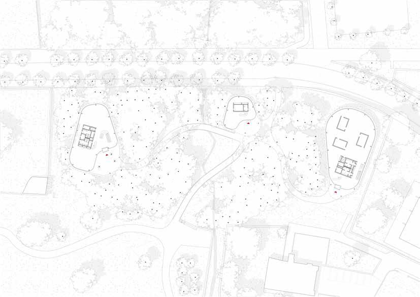 Para ello, se hace un estudio previo de la arboleda, con intención de transformarla lo mínimo posible, y se aprovechan los espacios más planos y vacios para su intervención.