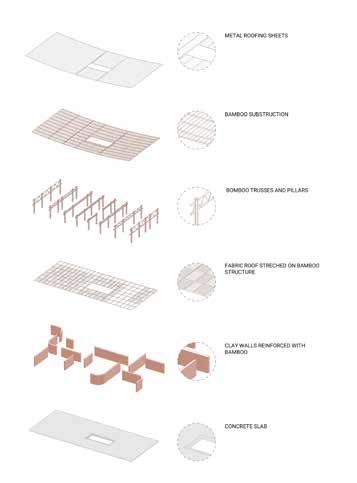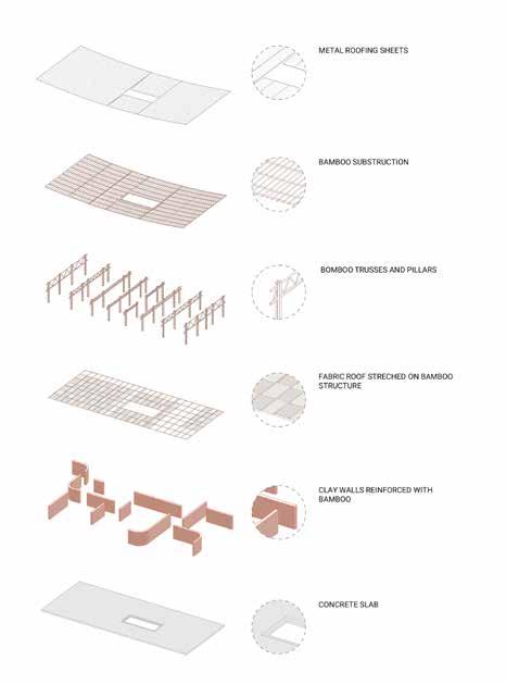 Se utiliza la madera como sistema constructivo principal, convirtiendo el edificio así en un ejemplo a escala. Después, el edificio se cubre con policarbonato y chapas minionda de acero galvanizado para darle una capa de impermeabilidad. Todo ésto se construye sobre un modulo de 4x4 metros que facilita la rápida construcción del mismo.