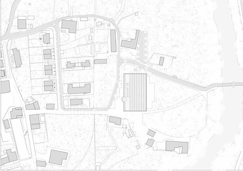 Siendo el único punto accesible al río en todo Andoain, se prevé un espacio verde para baños como centro del nuevo proyecto, por lo que el programa se ubica cerca de los limites del terreno, dejando así un gran espacio central.