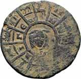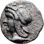 57 Tissaphernes, 400 - 395 v. Chr. AE ø 10mm (0,87g). Vs.: Kopf der Athena mit attischem Helm n. r. Rs.: ΤΙΣΣ−Α, Tissaphernes in medischer Tracht im Galopp n. r. reitend, über seinen Kopf Speer schwingend. Slg. Klein 255; Winzer 6.3; Cahn, Tissaphernes AA 1985, 589; Plankenhorn, Mysien S.31 Nr.29 (dieses Exemplar!). Dunkelgrüne Patina, min. Korrosionsspuren, ss 50,–58