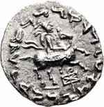 4• Mit Ohrlocke. Tetradrachme ø 24mm (13,67g). ca. 3. Jh. v. Chr. Vs.: Stilisierter Zeuskopf mit Lorbeerkranz n. r. Rs.: Reiter n. r., darunter Kopf n. r. Göbl, OTA 89.4 var. (mit Zaumzeug); Slg. Lanz 403 var. RR! ss 500,–Eines der am besten erhaltenen Exemplare dieses sehr seltenen Typs (vgl. Roma Numismatics Auktion XVII, London 2019, Los 108 - Hammer: 1500,- GBP)!