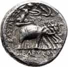 15 Agathokles, 317 - 289 v. Chr. Tetradrachme ø 25mm (16,90g). 310 - 305 v. Chr. Vs.: Arethusakopf n. l. von drei Delfinen umgeben, darunter F?. Rs.: ΣΥΡΑΚΟΣΙΩΝ, Quadriga n. l., oben Triskeles. Ierardi, 64 (V12 / R 40); Ierardi, 81 (V 15 R 52); HGC 2, 1348. Leichte Tönung, vz 2.000,–
