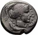 12 2.Republik, 466 - 406 v. Chr. Tetradrachme ø 25mm (16,91g). ca. 450 - 440 v. Chr. Vs.: Wagenlenker ein Viergespann n. r. führend, das von Nike bekränzt wird, [im Abschnitt Ketos]. Rs.: ΣΥΡΑΚΟΣΙ−ΟΝ, Kopf der Arethusa n. r., umgeben von vier Delfinen. Boehringer 554 (V282/R385); SNG ANS 180; HGC 2, 1311. Rs. Kratzer, dunkler Hornsilberbelag, s-ss 100,–
