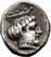 5• Kinnloser Typ. Tetradrachme ø 30mm (11,04g). 2. Jh. v. Chr. Vs.: Stilisierter Kopf des Zeus mit Lorbeerkranz n. r. Rs.: Stilisierter Reiter auf Pferd mit Entenschnabel u. Fußfesseln n. r. Göbl, OTA 244; Slg. Lanz 554; Slg. Flesche 720. Tönung, ss 100,–