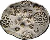 1• ICENI. ø 15mm (1,39g). ca. 50 - 40 v. Chr. Vs.: Frauenkopf mit Krone u. herzförmigem Ohr n. l., davor S-förmige Schlange. Rs.: Pferd n. l. springend, darüber u. darunter mehrere kreisförmige Ornamente. Van Arsdell 80; ABC 1495; SCBC 432; BMC 3524. Schwarzer Hornsilberbelag, ss-vz 100,–