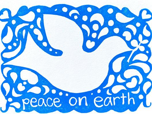 Hand Printed Block Printed cards are made with a handcarved linoluem block. The block is inked for each card and the ink is tranferred to the paper.