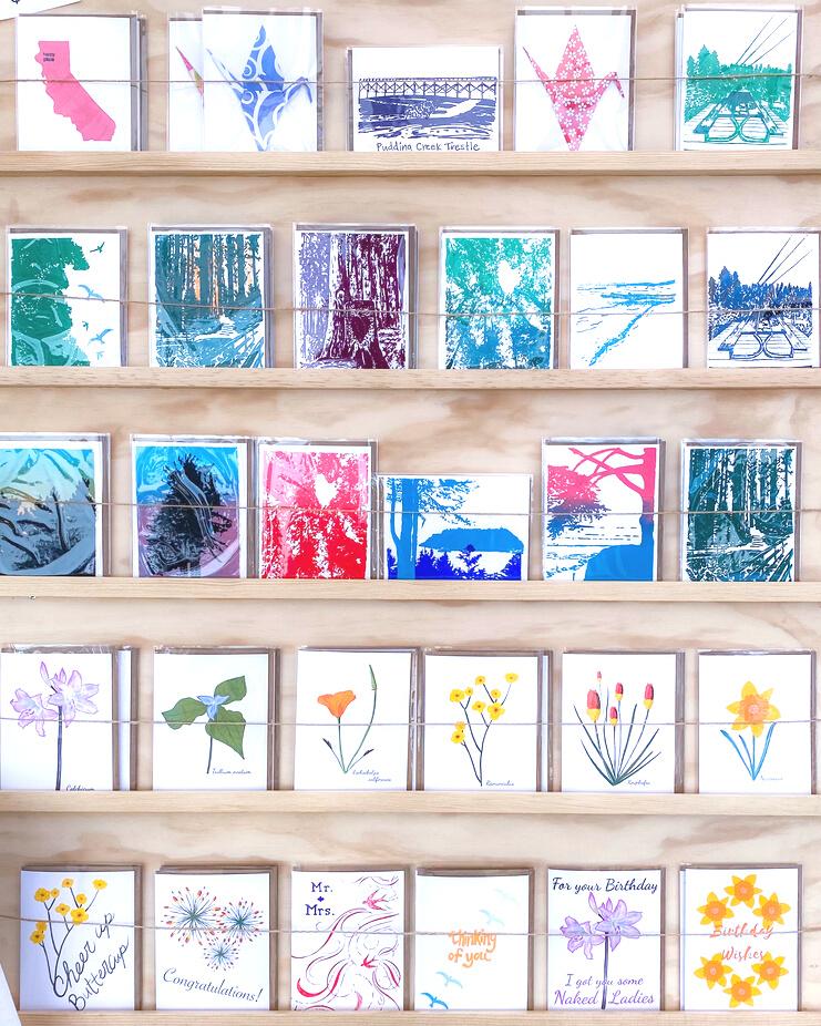 Hand Screen-Printed cards are each printed individually with a silkscreen containing an original drawing