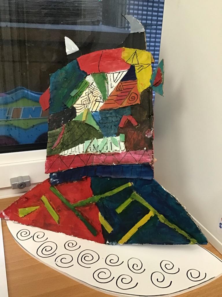 Secondary Students sketched out their ideas before transferring them into 3D painted cardboard sculptures.