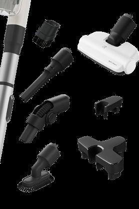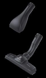 Teleskoprör, AllFloor-, parkett- och turbomunstycke, 2-i-1-fog-och möbelmunstycke och dammborste som förvaras på dammsugaren