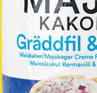 Smaksatta riskakor, majskakor Friggs. 120–130 g. Jfr pris 134:62–145:83/kg.