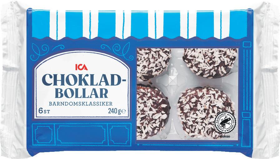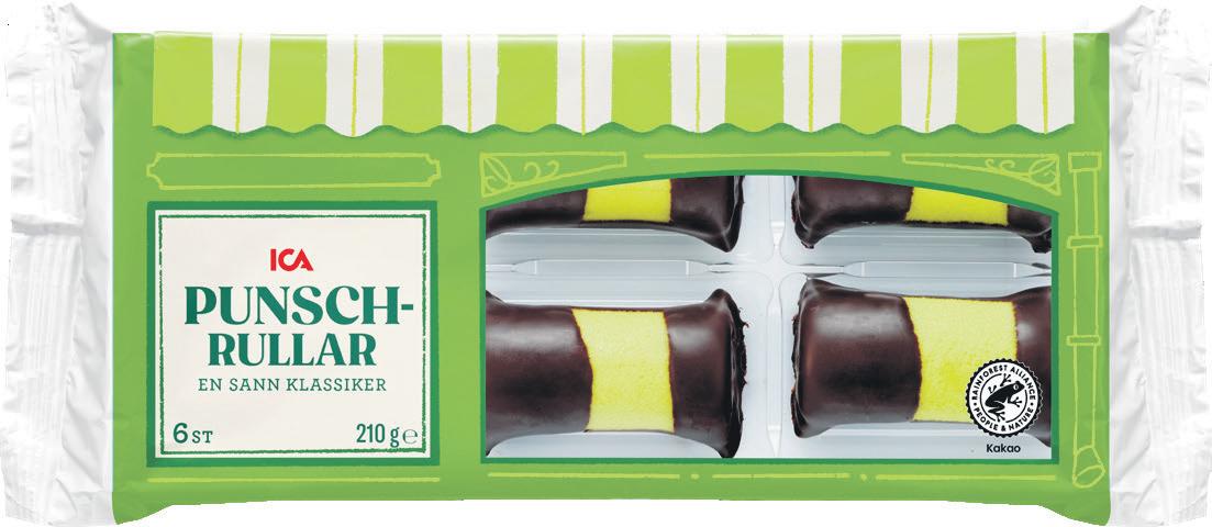 Punschrullar, Arraksbollar, Chokladbollar ICA. 210–240 g. Jfr pris 52:08–59:52/kg.