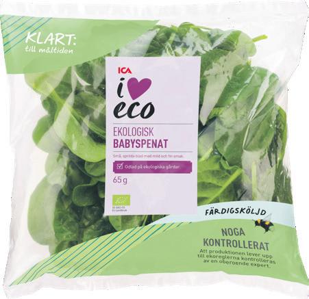 Ekologiska sallater i påse ICA I love eco. 65 g. Jfr pris 230:77/kg.