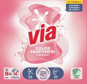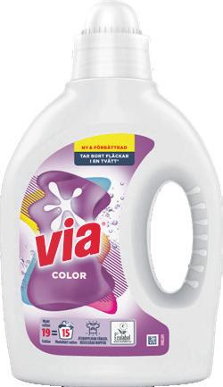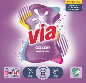 Tvättmedel, sköljmedel Via, Comfort. 760 g, 760-925 ml. Jfr pris 0:53-1:71/tvätt.