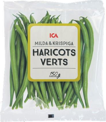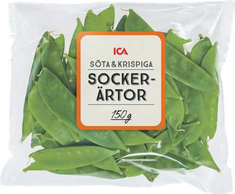 Socker-, salladsärtor, haricots verts ICA. Peru/Kenya/Guatemala. 150 g. Klass 1. Jfr pris 133:33/kg.