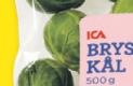 Brysselkål i påse ICA. Rosa Bandet. Nederländerna. 500 g. Klass 1. Jfr pris 40:00/kg.