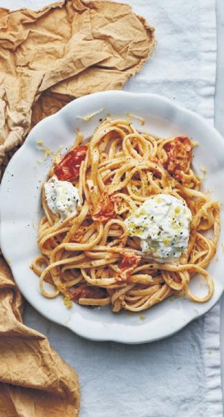 Krämig tomatpasta med citron och burrata