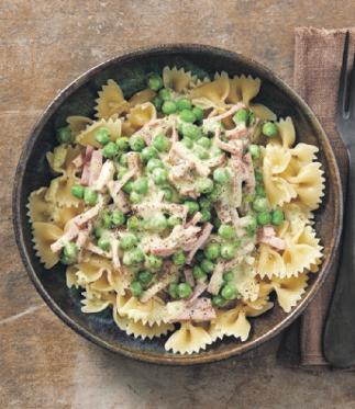 Pastapesto med skinka och ärtor
