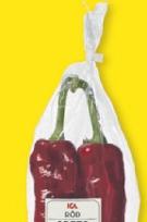 Röd spetspaprika i påse ICA. Nederländerna/Spanien. 200 g. Klass 1. Jfr pris 75:00/kg.