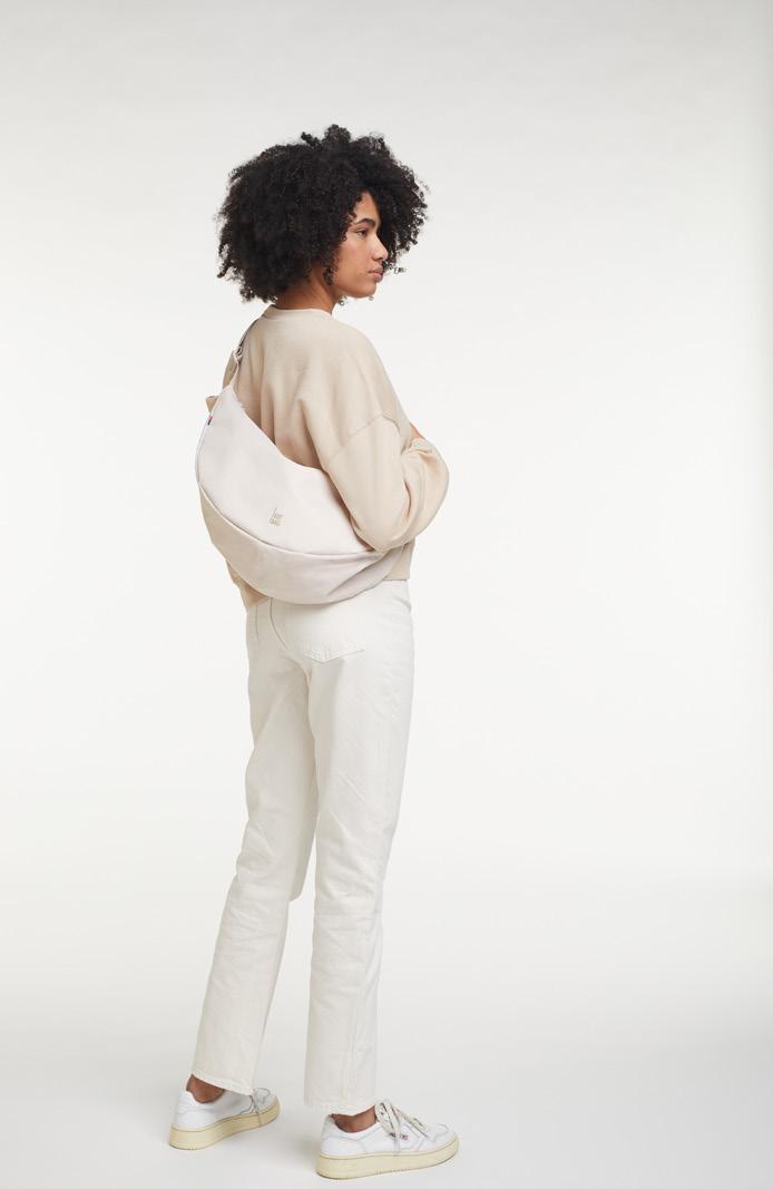 The MOON BAG in two sizes can be worn variably thanks to the adjustable shoulder strap and hugs your body thanks to the round shape and the soft material.