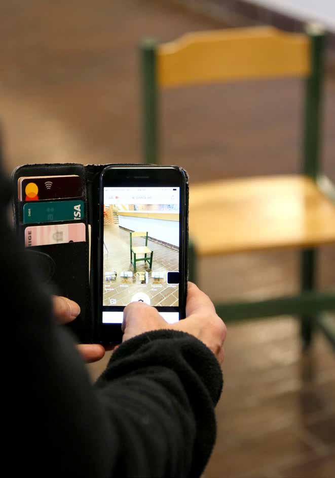 Via en mobilapp registrerar Linda Annmo möbler till Sajklas möbeldatabas.