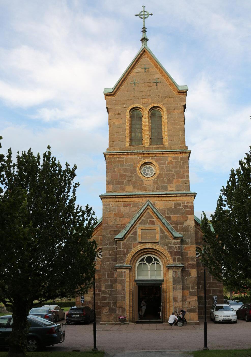 Brastad kyrkas är oväntat stor med sitt majestätiska kyrktorn.