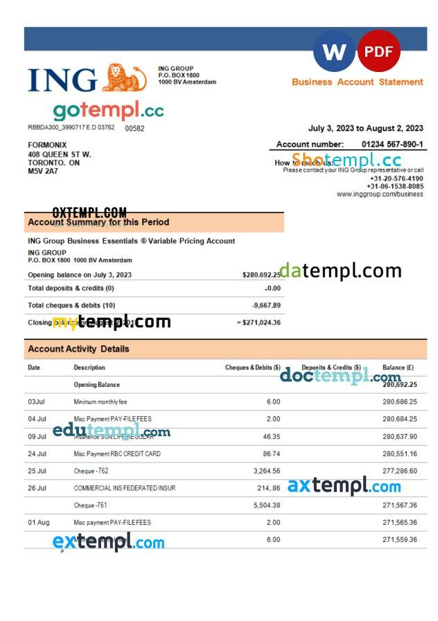 Completely editable bank company account statement template – to fill out your detailed information and business finances easily.
