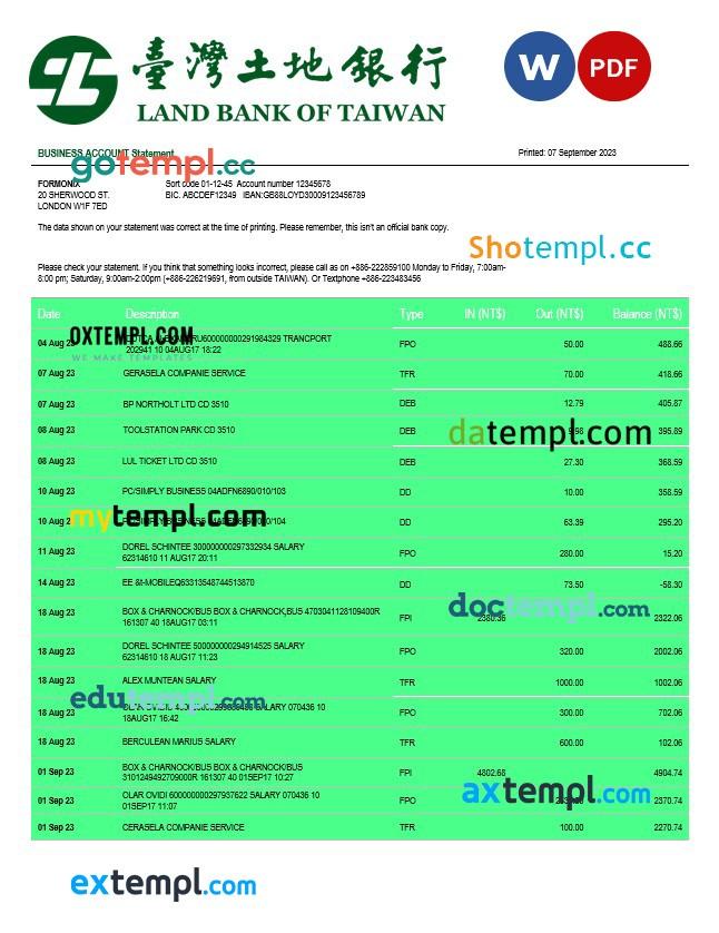 Land Bank of Taiwan firm account statement Word and PDF template go_1756808181