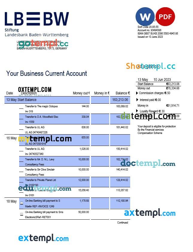 Landesbank Baden-Württemberg enterprise account statement Word and PDF template
