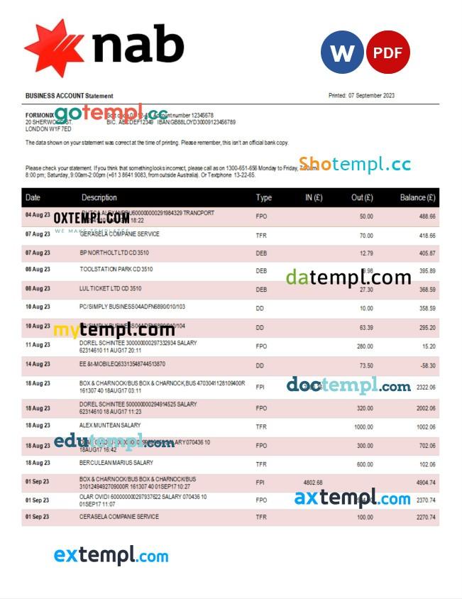 Completely editable bank company account statement template – to fill out your detailed information and business finances easily.