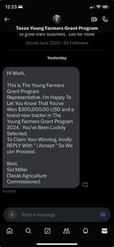I want to make one thing clear: the Texas Department of Agriculture (TDA) will never ask you for money or personal information via phone, email, or any unsolicited communication. If you receive such a request, it’s a scam—plain and simple. Don’t send money, don’t share your personal details, and report any suspicious activity to your local authorities immediately. Your safety and security are our top priority."