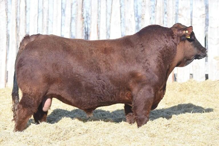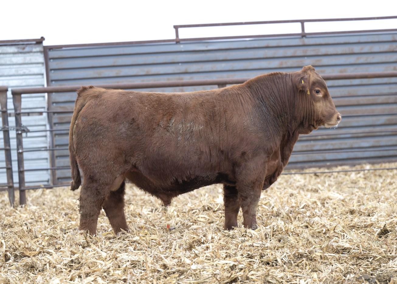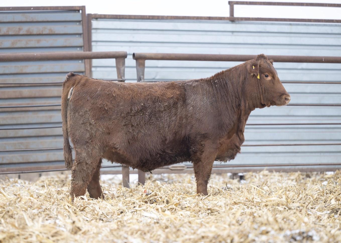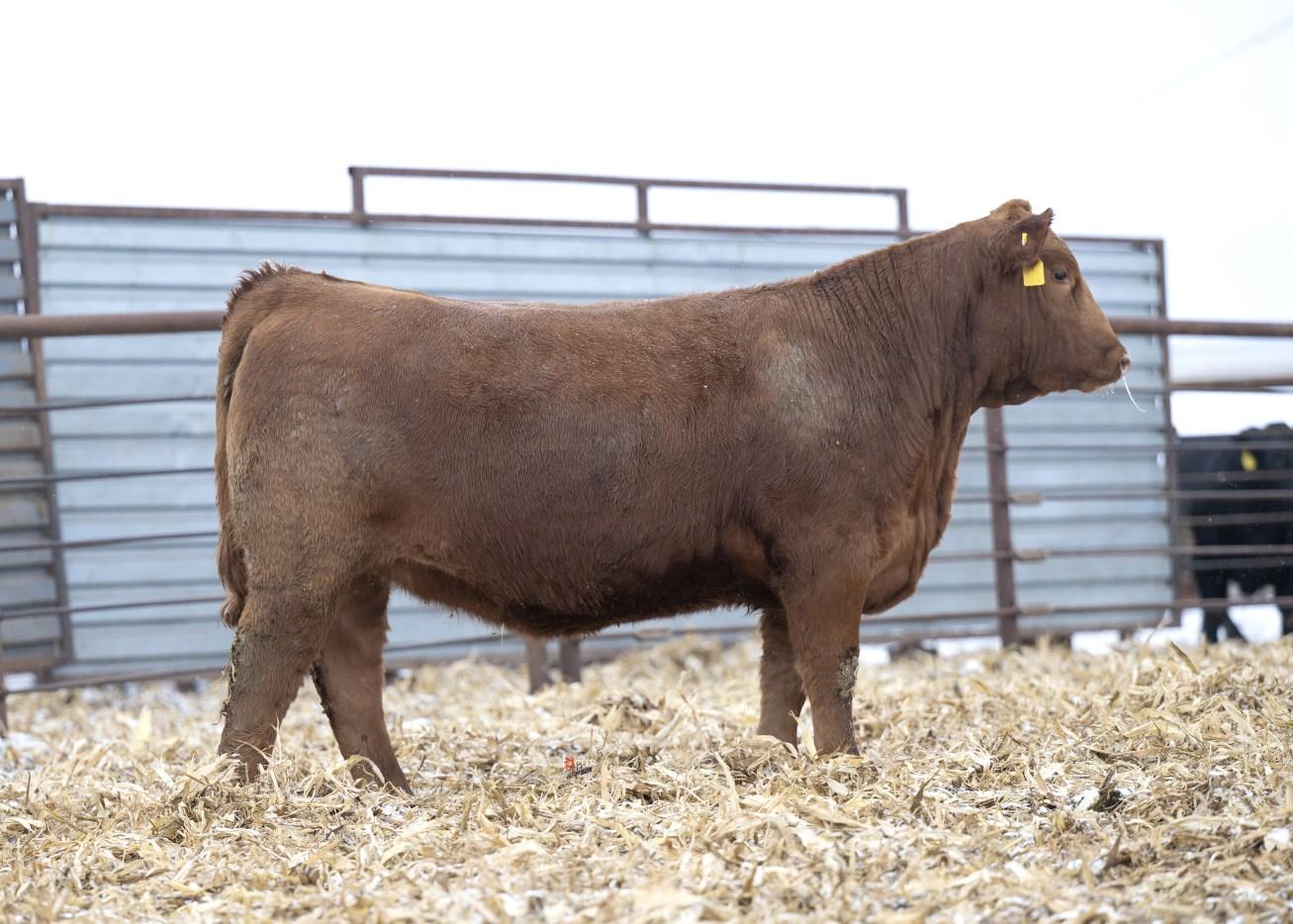 supply! Don’t let this Lot 37 bull escape your grasp if you are looking for a sleep all night red heifer bull! His dam has proven herself to be consistent producer for us for the past 9 years. Proven consistency should only give you more confidence when making this investment!