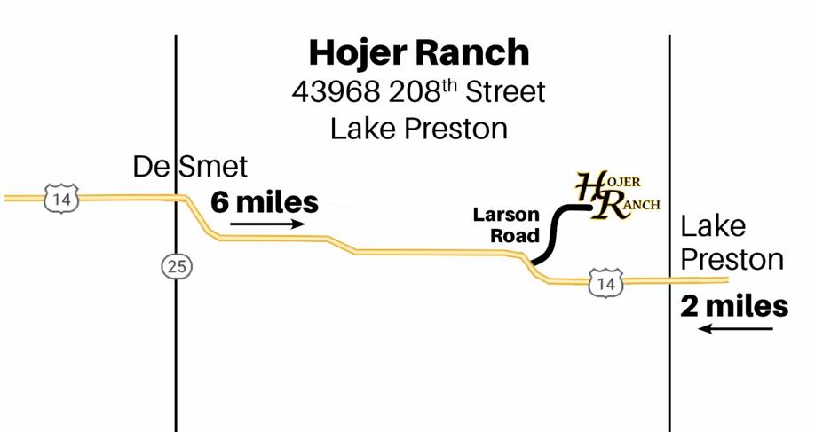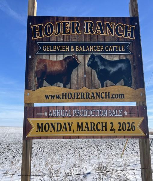 We are very excited to have our Production Sale at the Hojer Ranch Headquarters again this year. Our location is easily accessible from Highway 14. Please use the map for your directions. Look for our sign on our corner. Using our 911 address in GPS will take you to a different location. We wish you safe travels and look forward to seeing you all on March 2nd!
