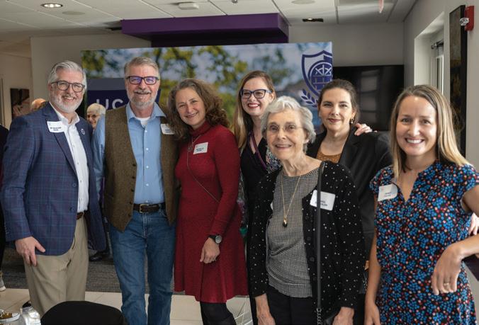 President Houston Davis, Thomas Nowlin ’22, Michelle Posey, Taine Duncan, Carol Schedler, Patricia Smith ’01, ’03 and Jenny Davis